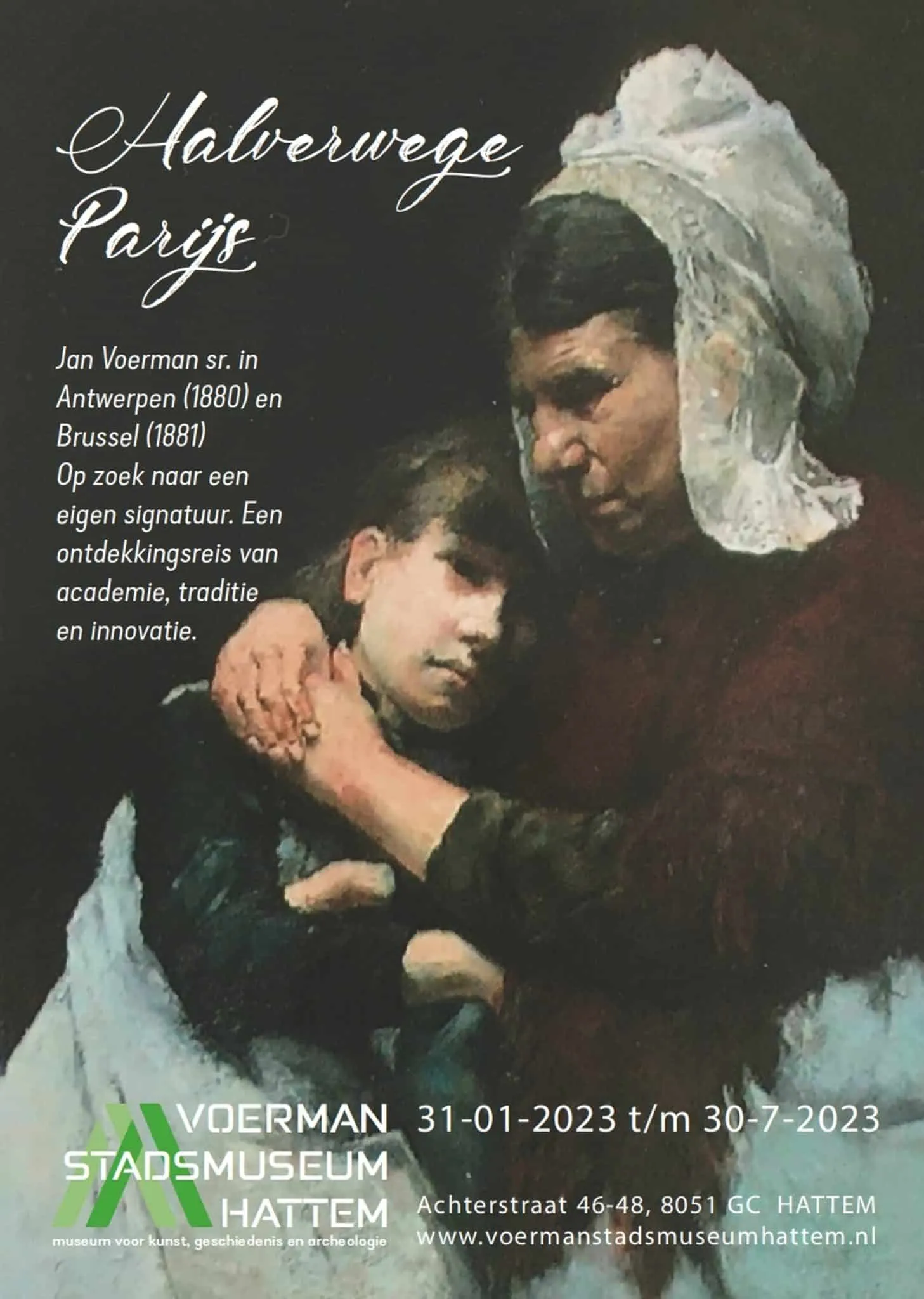 Wat zag Jan Voerman sr. allemaal in die tijd in België? Wat inspireerde en beïnvloedde hem? In de tentoonstelling ‘Halverwege Parijs’ toont het museum werken uit de Barat-Venker collectie die Voerman senior in zijn tijd in België zou hebben kunnen gezien. Daarnaast ziet u werk van Voerman senior met sporen van die beïnvloeding. Bruno Barat en Paul Venker verzamelden jarenlang Belgische schilderkunst uit de negentiende eeuw. De tentoonstelling is in samenwerking met Bruno Barat tot stand gekomen.