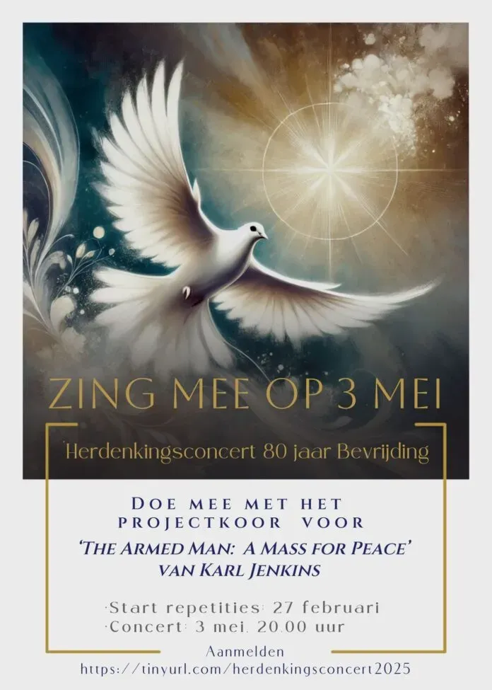 Op zaterdagavond 3 mei vindt in de Marke een herdenkingsconcert plaats. Een groot koor en orkest voeren The Armed Man van de componist Karl Jenkins uit. Meezingers in het projectkoor kunnen zich nu al aanmelden.