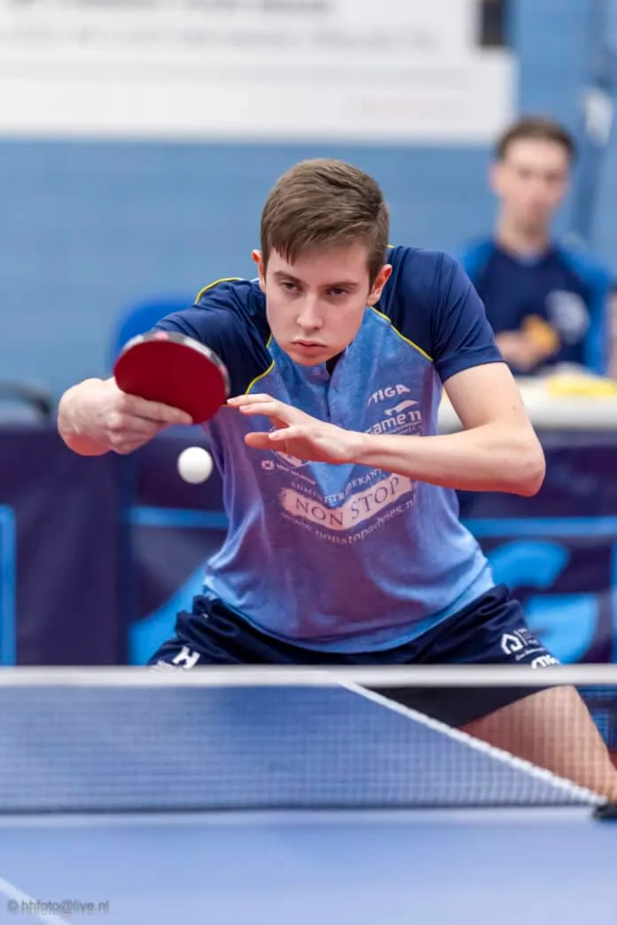 Van Wijnen/Smash ’70 heeft één punt overgehouden aan de zware uitwedstrijd tegen de regerend landskampioen Taverzo uit Zoetermeer. Tegen de Fin Alex Naumi, Milo de Boer en Ivan Kahn stond een opgave van formaat te wachten voor Brent Ronde, Lode Hulshof en Tim Gras. Laatstgenoemde (foto) leverde een sterke partij tegen Kahn (1-3 winst), waardoor de Hattemers op het scorebord kwamen. Alle andere wedstrijden waren een prooi voor de ploeg uit Zuid-Holland.