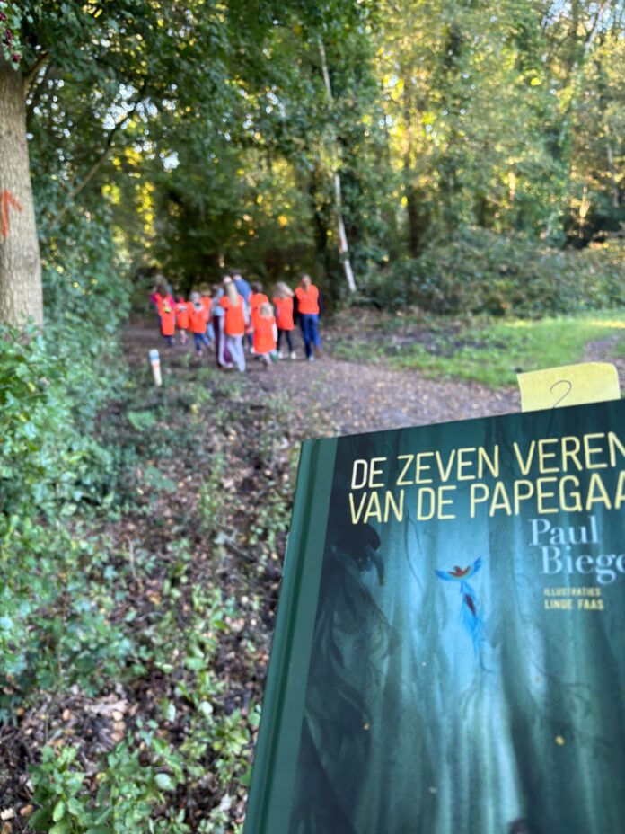 ‘Wat een fantastische start van de Kinderboekenweek hebben we vandaag beleefd! Het thema dit jaar is Vol avontuur en dat hebben we samen met de kinderen letterlijk genomen. We hebben na de pauze een avontuurlijke wandeling door het bos gemaakt. Op verschillende plekken stonden ouders en een opa klaar om voor te lezen uit spannende, grappige en ontroerende boeken en gedichten. Zo kwamen we samen in de sfeer van verhalen vol fantasie en ontdekkingen.’ Aan het woord is Linda Eisema-Schouwenburg,