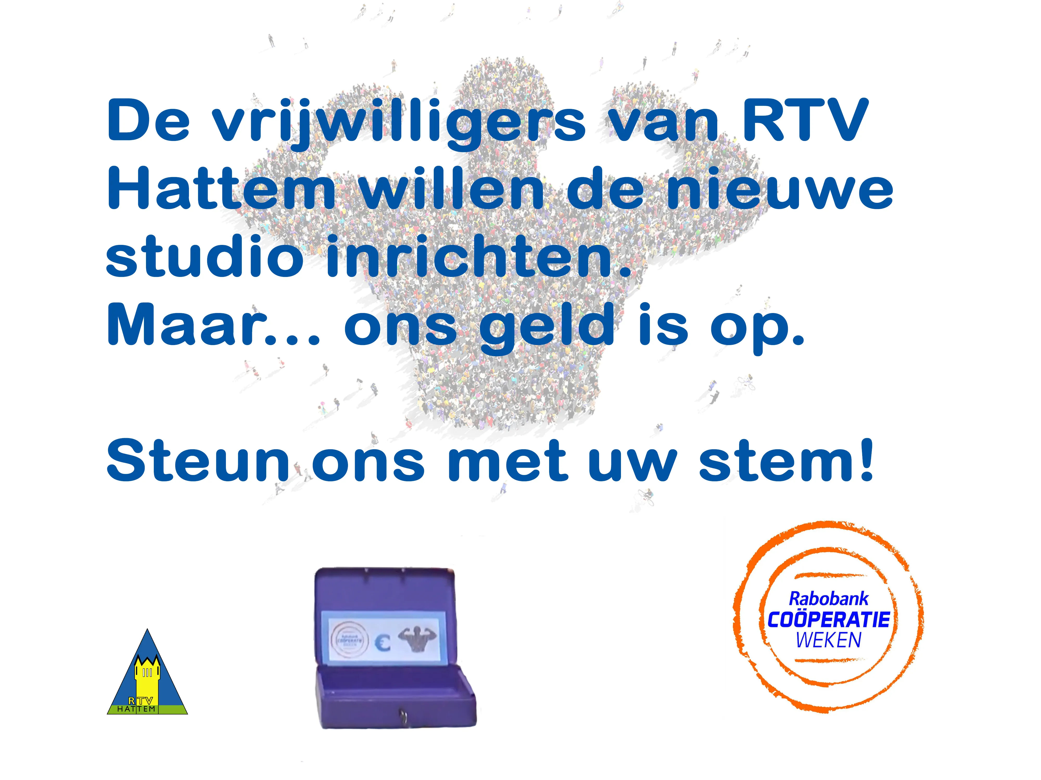 RTV Hattem doet mee aan de Rabo Cooperatieweken. Het bestedingsdoel -nieuwe apparatuur voor de radiostudio- is door de Rabobank gehonoreerd.!