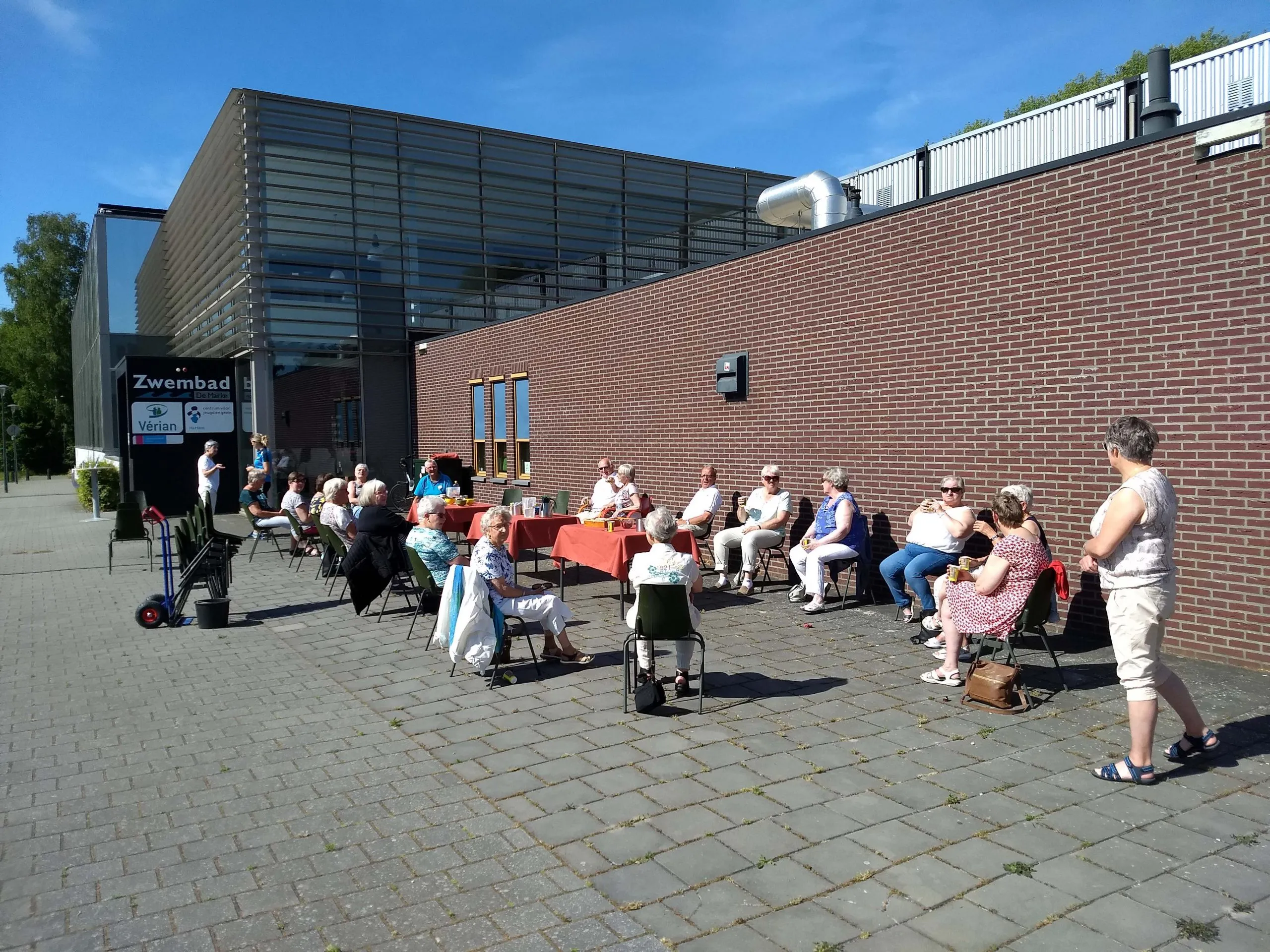Vanaf 2 juni kan na iedere activiteit gezellig met elkaar een kopje koffie/thee worden gedronken en van deze mogelijkheid maakten veel zwembadbezoekers gebruik.