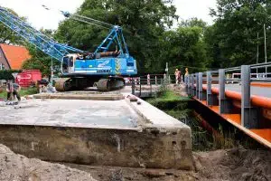 Op dit moment is men begonnen met de verwijdering van het brugdek van de vaste brug die nu het kanaal overspant. Dit brugdeel wordt nu in 3 stukken gezaagd (ieder stuk weegt 15 ton).