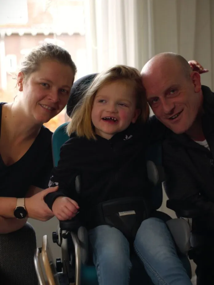 “Enkele weken terug is Gwendolyn geopereerd, zodat de epilepsieaanvallen zouden afnemen. Gelukkig is dat nu ook het geval, zodat ze eindelijk wat rust heeft en we beter aan haar ontwikkeling kunnen werken.” Vader Niels is maar wat trots op zijn dochter die hem af en toe trakteert op een spontane knuffel. Hij vervolgt: ”Voor de operatie had ze bijna dertig aanvallen per dag, enorm belastend voor haar en natuurlijk ook voor ons als ouders. Een bij-effect van de operatie was dat Gwendolyn halfzijdig verlamd raakte. Gelukkig lijkt dat zich wel te herstellen. Maar of dat helemaal zal lukken is nog maar de vraag.”