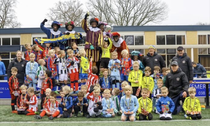 Deze medailles werden omgehangen door de Pieten die eerder met voetballen al hadden verloren van de mini’s. Ook de wedstrijden tegen de vaders en moeders werden glansrijk door de mini’s gewonnen.
