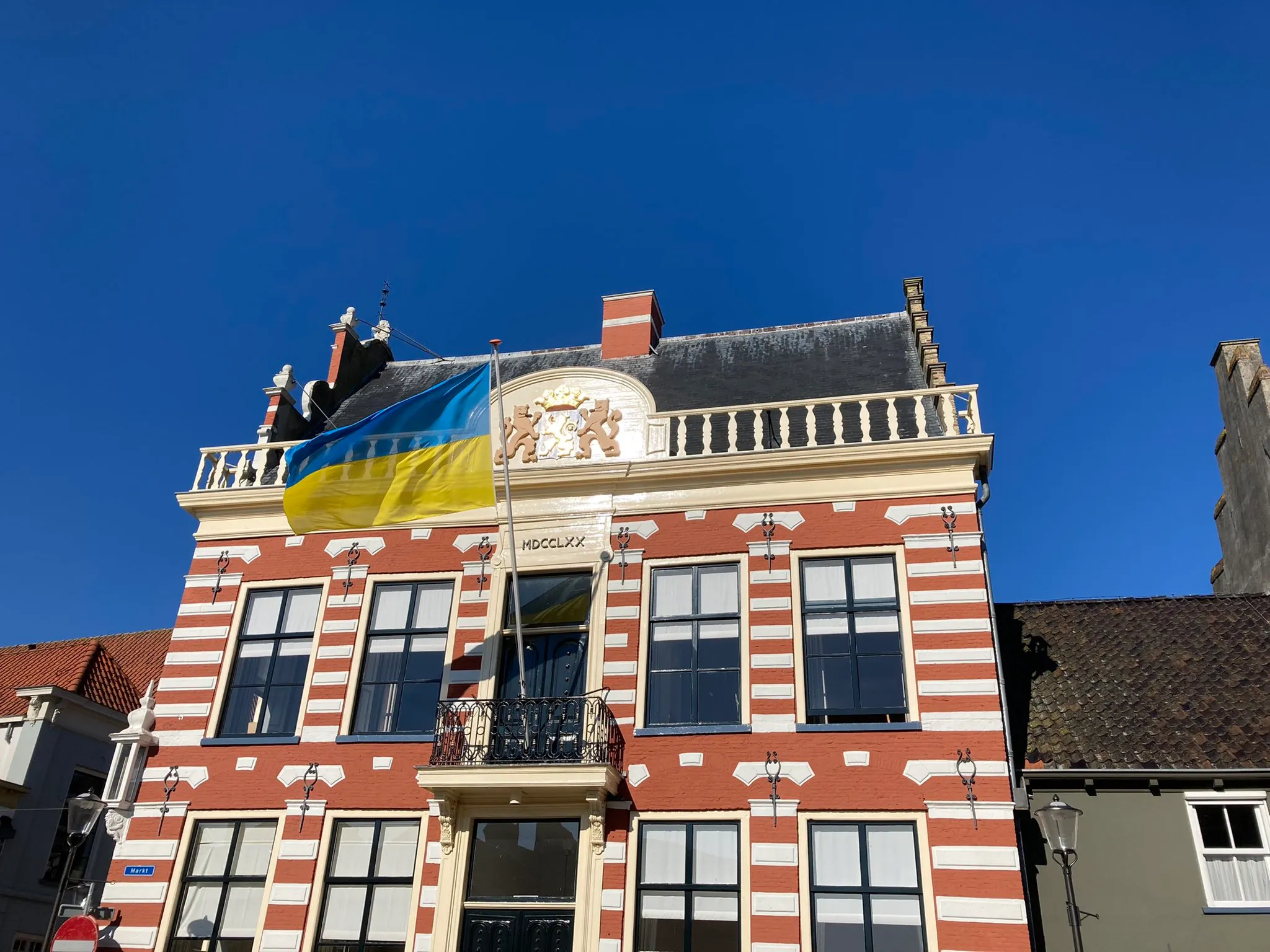 “Vandaag hebben we twee Oekraïense vlaggen uitgehangen als blijk van solidariteit. Op de voorgevel van ons Stadhuis en in de toren van de Grote Kerk.”