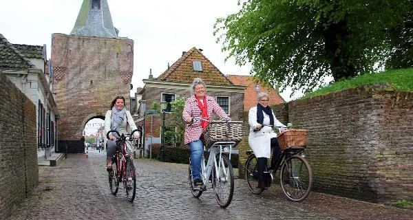 De wethouders Christianne van der Wal (Harderwijk), Doret Tigchelaar (Hattem) en José Oosthoek (Elburg) hebben op de fiets het nieuwe fietsknooppuntenboekje van de Hanzesteden op de Veluwe gelanceerd.