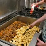 In de avond is er een hele ploeg die zorgt voor het eten. ‘Elke avond eten ze iets anders. We kijken naar wat de kinderen graag of liever niet eten. We proberen om enigszins gezonde maaltijden te maken, want we weten niet wat ze thuis krijgen.’ De kinderen krijgen qua eten niks te kort ‘Ze krijgen meestal drie rondes eten. Vooraf krijgen ze soep of fruit en daarna krijgen ze een hoofdgerecht en een toetje’. Al het gekookte eten is halal en er wordt rekening gehouden met kinderen die vegetarisch eten. Op de laatste avond gaat dit allemaal een beetje anders. Dan is het namelijk patatdag.