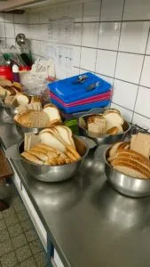 ‘Om kwart over acht ’s ochtends beginnen we met het klaarzetten van het ontbijt. Als het ontbijt klaar is moet het alles afgewassen en opgeruimd worden. Ook wordt er dan gekeken naar hoeveel beleg, melk en brood is er nog. Op basis daarvan worden er boodschappen gedaan.