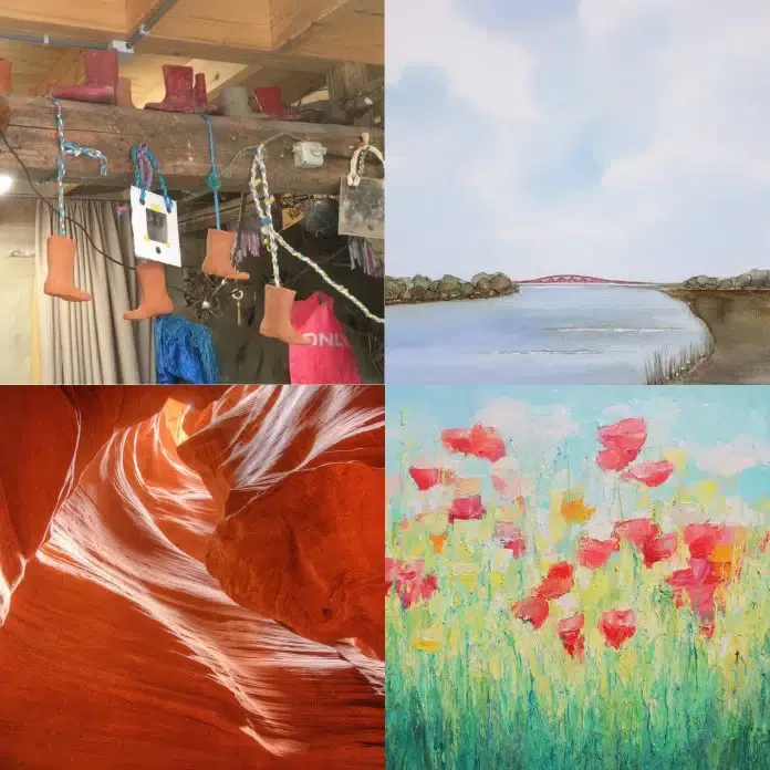 Alle veertien gildeleden hebben werken ingeleverd voor deze wandelexpositie, voor binnen en voor buiten. Dit levert op de route Eijerdijk-Randweg-Pannenkoekenkamp-Doornkamp-Roseboomspoor een diversiteit aan kunstwerken op. Sommige werken hangen aan een raam, een balkon of in een boom op de route. Andere zijn te bewonderen in de tuin voor een woning.