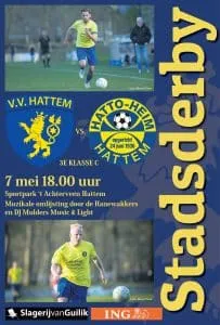 De stadsderby v.v. Hattem – s.v. Hatto Heim staat zaterdag 7 mei staat om 18:00 uur op het programma. Het wordt de 11e keer in competitieverband dat beide ploegen elkaar treffen.