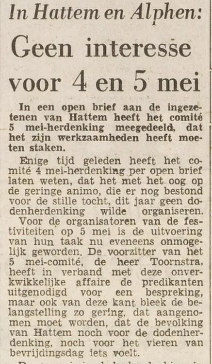 En toch, er was een tijd dat men erover dacht om 4 mei maar helemaal af te schaffen, ook in Hattem.