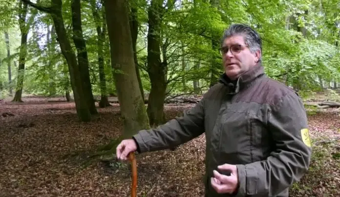 Natuurgids Jan Niebeek leidt mensen rond in de bossen op de Veluwe.