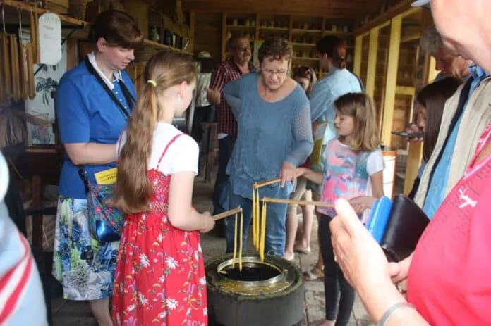 Van 10.00 tot 15.00 uur vertelt hij graag zijn verhaal over het imkeren en kunnen kinderen er zelf kaarsen maken door het dompelen van een lont in de warme en dan vloeibare bijenwas. Wie alles wil weten over werksters, darren en koninginnen, het werk van een imker of wat de rol is van de bijen als het gaat om biodiversiteit, is die dag op Vrieze’s Erfgoed aan het goede adres. In de bijenstal op het terrein is verder een bijzondere collectie strokorven te zien evenals oud imkersgereedschap. Op het terrein staat ook een bijenhotel voor solitair levende bijen. En natuurlijk zijn er ook verschillende soorten honing verkrijgbaar. In de molenboerderij serveert EETIT speciaal voor deze dag lekkernijen bij de koffie en thee waarin honing is verwerkt.