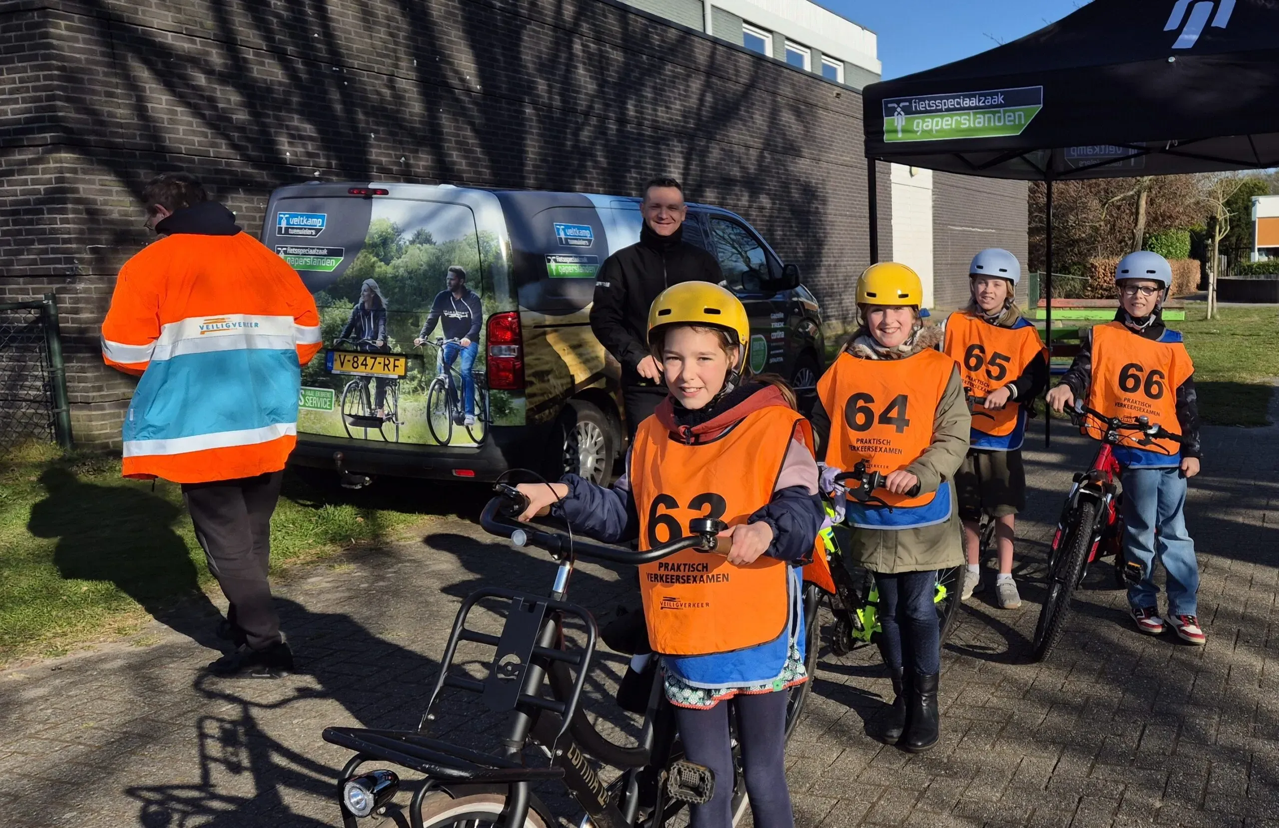 Voor de leerlingen was de fietshelm overigens bijzaak. Hoofdzaak was het examen zelf. Voordat zij van start gingen werden de fietsen gekeurd door Roel Veldkamp van Fietsspeciaalzaak Gaperslanden en enkele enthousiaste vrijwilligers. In sommige gevallen werden nog wat kleine reparaties verricht waarna de leerlingen aan de start mochten verschijnen.