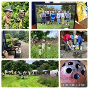 In de galerie en in de tuinen was van de kunstenaarsgroep nieuw werk te zien. Beelden van keramiek en van steen, van abstract tot realistisch. Van prachtige schilderijen, bloemen van keramiek op steel, dieren figuren, tot mooie vazen en schalen.