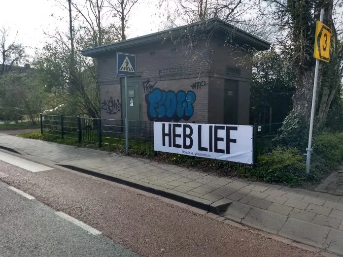 De slogan ‘Heb Lief’ waarmee beeldend kunstenaar Ronald A. Westerhuis positieve energie wil brengen is ook in Hattem gesignaleerd. Aan de Eijerdijk hangt een spandoek met deze woorden; een kunstproject dat Westerhuis met zoveel mogelijk mensen wil delen.