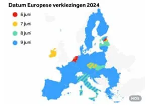 In andere landen gaan mensen later naar de stembus. Zondagavond om 23.00 uur wordt pas de uitslag bekend gemaakt. Dan sluiten de allerlaatste stemlokalen, in dit geval in Italië. De Europese Commissie, het dagelijks bestuur van de EU, wil dat o.a. Nederland wacht om de verkiezingen in andere landen niet te beïnvloeden.