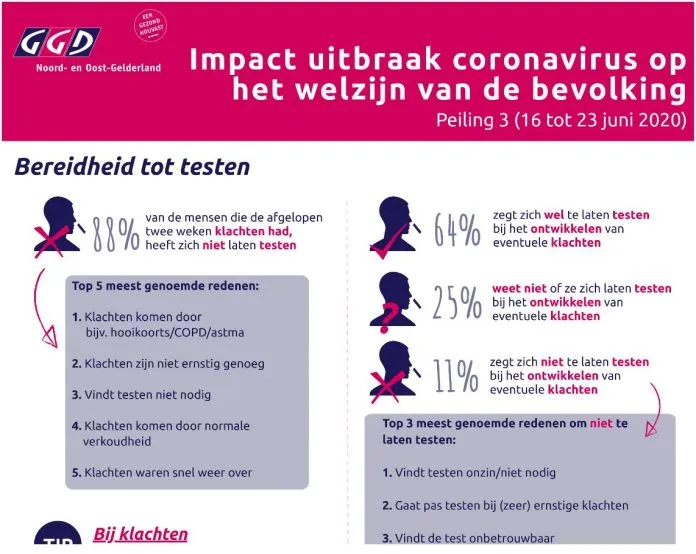 De angst en bezorgdheid over het coronavirus nemen verder af. Dat zegt de GGD Noord- en Oost-Gelderland na een onderzoek onder 2500 inwoners. Daaruit blijkt dat de steun voor de maatregelen ook afneemt.