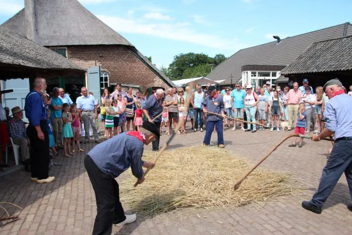 Het jaarlijkse Oogstfeest in en rond het Boerderijmuseum ’Bovenstreek’ aan de Bovenstraatweg 10a in Oldebroek belooft zaterdag 11 augustus voor jong en oud veel goeds. De ruim 120 in Veluwse klederdracht gehulde vrijwilligers van het Boerderijmuseum trekken de tweede zaterdag van augustus tussen 10.00 en 16.00 uur alles uit de kast om het grote aantal activiteiten bij ’hun’ museum in goede banen te leiden. De expositie ’Rien Poortvliet en het boerenleven’ kan worden bekeken, maar bijvoorbeeld ook dorsen met de stok.