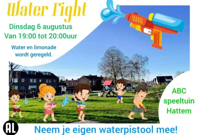 Alle kinderen worden uitgenodigd om dinsdag 6 augustus van 19.00-20.00 uur mee te doen met het waterfestijn van de ABC-speeltuin in de ABC-buurt. De speeltuin ligt aan de Allee.