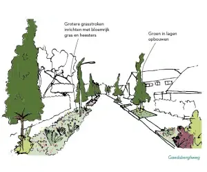 In de Groenstructuurvisie Hattem staat het gewenste beeld van de Gaedsberghweg getekend bij de gebiedspaspoorten. Volgens het plan is de omgeving van de Hogenkamp: Een wijk waarin het bossige karakter is terug te vinden in de straatjes. Er staan bomen die op de Veluwe voorkomen, voorzien van onderbeplanting die je ook op de Veluwe aantreft. De bomen geven extra ‘groenvolume’ aan de straten en bieden verkoeling tijdens zomerse perioden. (…) De bosrand heeft een gelaagde opbouw met een mantel en zoomvegetatie.