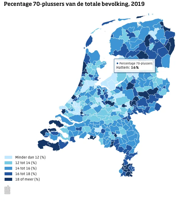 Ouderen zijn kwetsbaarder voor het COVID-19 virus en leven in deze tijd daarom vaak (nog) geïsoleerder dan anderen. Daarnaast staat de thuiszorg onder druk, waardoor ouderen afhankelijker kunnen worden van mantelzorg. Het CBS heeft cijfers gepubliceerd die onder meer inzicht geven in het aantal 70-plussers in Hattem. In 2019 was 16% van de Hattemers 70 jaar of ouder. Dat is relatief gezien hoog en in Hattem wonen dan ook meer 70-plussers dan in de omliggende gemeenten.