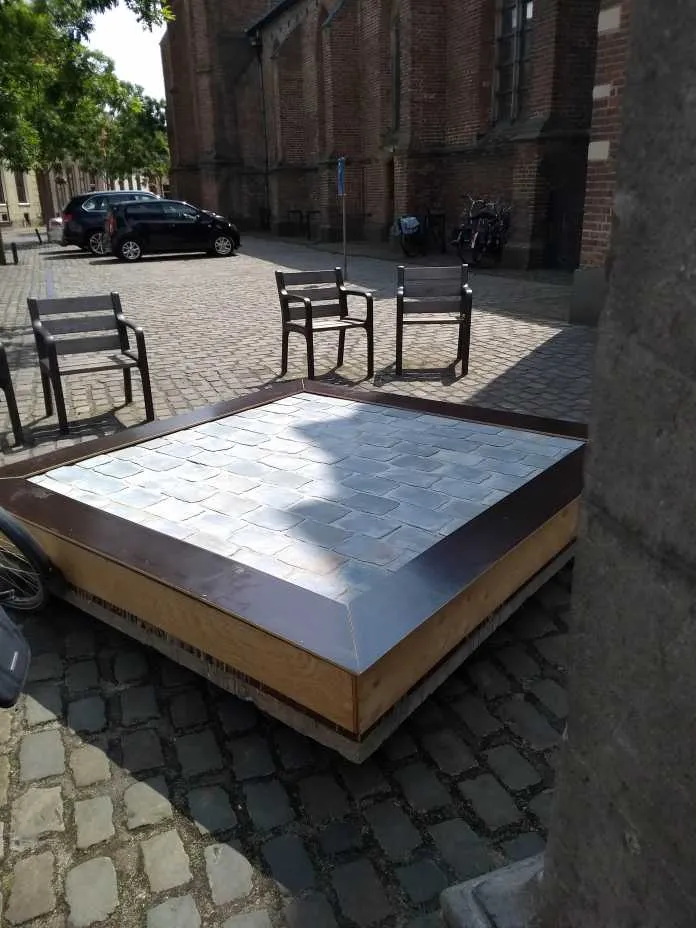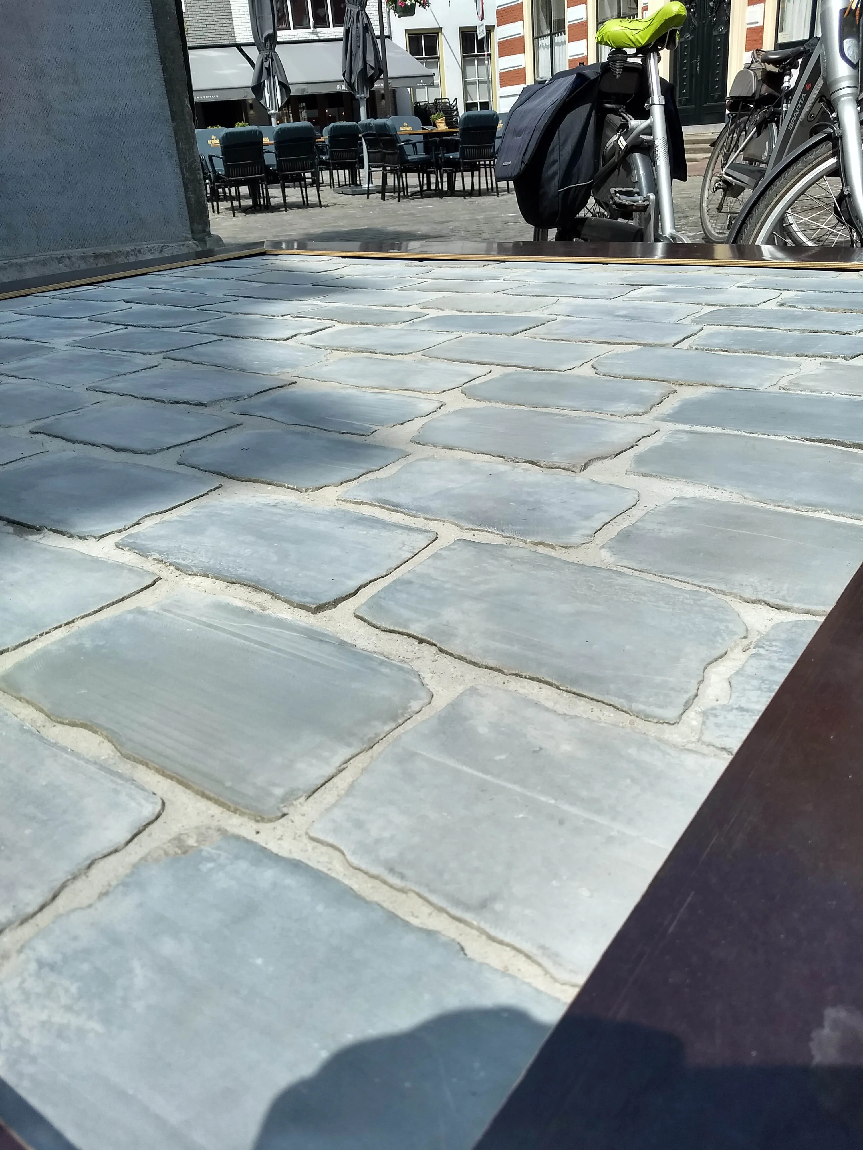 Op de Markt ligt een proefvlak van gezaagde natuurstenen. Deze stenen bestaan uit de huidige bestratingsstenen op de Markt, maar dan met een afgezaagd vlak. De stenen zijn daardoor aan één kant vlak en die vormen het loopoppervlak.