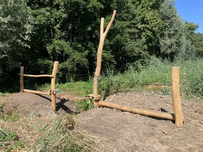 Voor de jongsten is er een glijbaan en de voor wat oudere kinderen is er een avontuurlijk klautertoestel, gemaakt van natuurlijke materialen, om over een greppel te klauteren. Verder staan er bankjes zodat de ouders of begeleiders van de kinderen en/of honden ontspannen kunnen kijken naar het geklauter van hun kroost of naar hun hond die helemaal los gaat op het omheinde losloopveld.