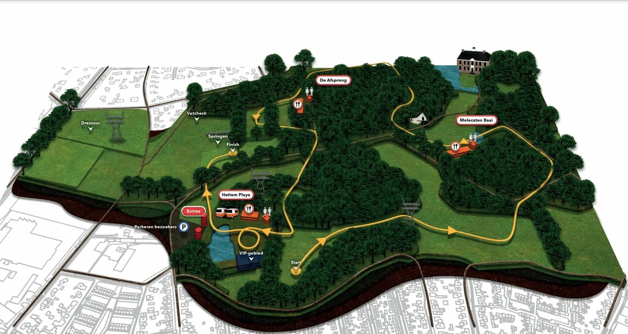 Het centrale punt van de crosscountry is ‘Hattem Playa’, vlak bij de start en finish. Hier worden VIP-gasten ontvangen en is voor alle bezoekers een terrein met foodtrucks ingericht. “Het begint er daar steeds meer uit te zien als een Engels park,” zegt Sieto van der Scheer. “We hebben hoge verwachtingen van de ommezwaai qua route waardoor de watercombinatie van Hattem Playa van de andere zijde wordt gesprongen.