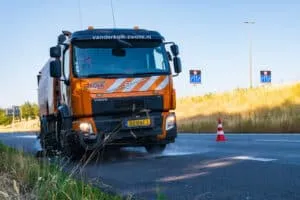 Het tweede ongeluk gebeurde omstreeks 18.45 uur. De politie en ambulancedienst gingen met spoed naar de snelweg, ook de brandweer werd uit voorzorg opgeroepen. Hun inzet bleek echter niet nodig. De bestuurder van de bestelbus zat niet bekneld, ook raakte hij niet ernstig gewond. De bestelbus liep flinke schade op door de klap. Een bergingsbedrijf heeft de bus afgesleept. De oplegger van de vrachtwagen had alleen wat bumperschade. Een gespecialiseerd bedrijf heeft het met olie en koelvloeistof besmeurde wegdek gereinigd.