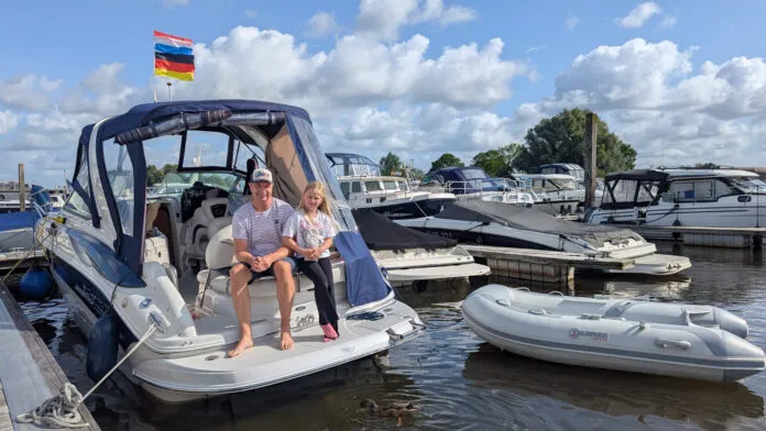 Het stel is met hun twee kinderen Lena (7) en Ben(12) net één dag onderweg vanuit hun thuishaven Emmerich. De door driehonderd paardenkrachten aangedreven schroef zorgt er voor dat het schip de reis naar Hattem in iets minder dan 4 uur aflegde. Carlo en dochter Lena voeren het gesprek, terwijl Dajana voor een lekker kopje koffie zorgt. Carlo: ‘Hattem is onze eerste stop. We maken met ons gezin een rondreis rond de polders via de randmeren en het IJsselmeer. Vandaag varen we verder naar het Flevostrand.’