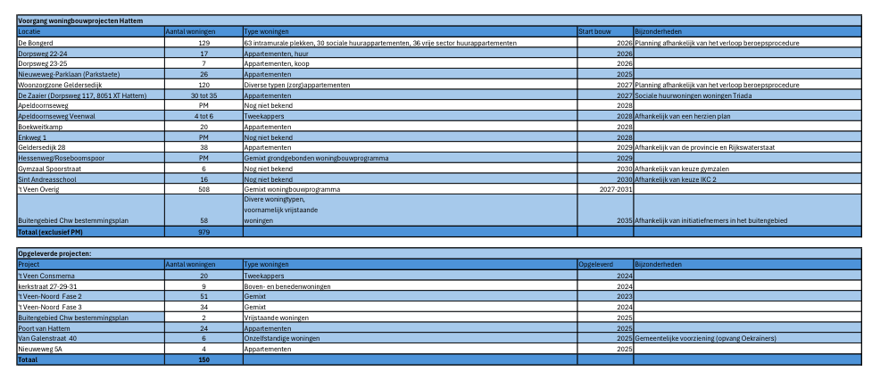 Wethouder Koen Castelein heeft de gemeenteraad een overzicht gestuurd  ‘Voortgang woningbouwprojecten’. In februari 2025 is de laatste geactualiseerde versie met de raad gedeeld. Sinds vorig jaar wordt het geactualiseerde document jaarlijks aan het begin van het jaar verspreid.