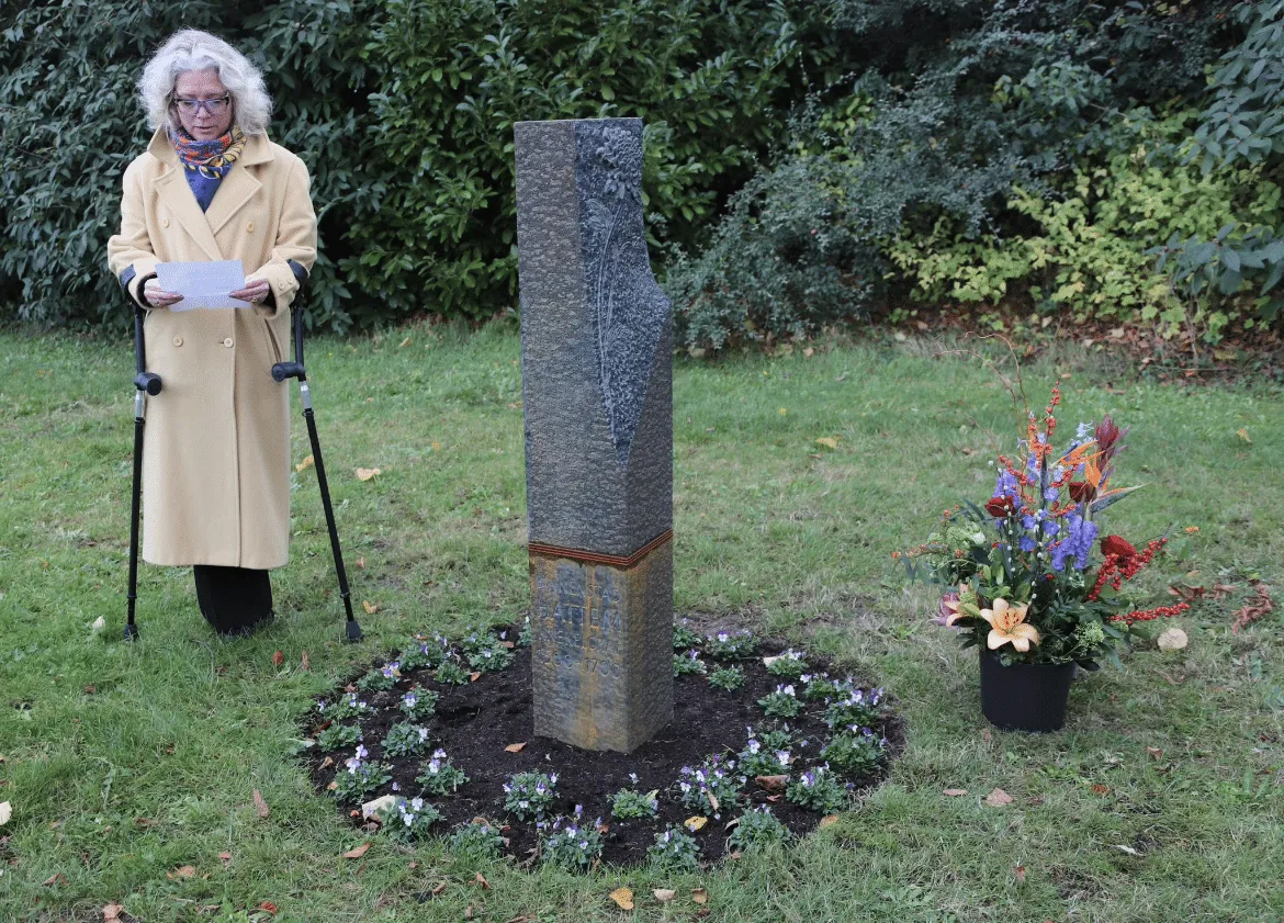 Burgemeester Marleen Sanderse las het gedicht ‘Wie gaat, wat blijft’ van Anton van Wilderode voor: