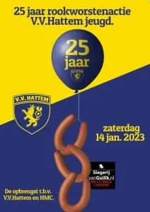 Zaterdagmorgen 14 januari organiseert de jeugdafdeling van voetbalvereniging Hattem voor de 25e keer de worstactie. Na 2 corona-jaren is dan eindelijk de tijd aangebroken voor de vereniging om deze jubileum editie te mogen organiseren.