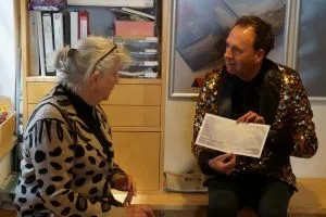 In het Voerman Museum Hattem is momenteel de expositie ‘René Kinket, beeldend verteller’ ingericht. Jochem van Gelder bezocht met Diny deze expositie en bij dit bezoek wachtte haar een verrassing. In aanwezigheid van enkele genodigden was een speciale opening van de tentoonstelling georganiseerd, uiteraard met inachtneming van de coronaregels.