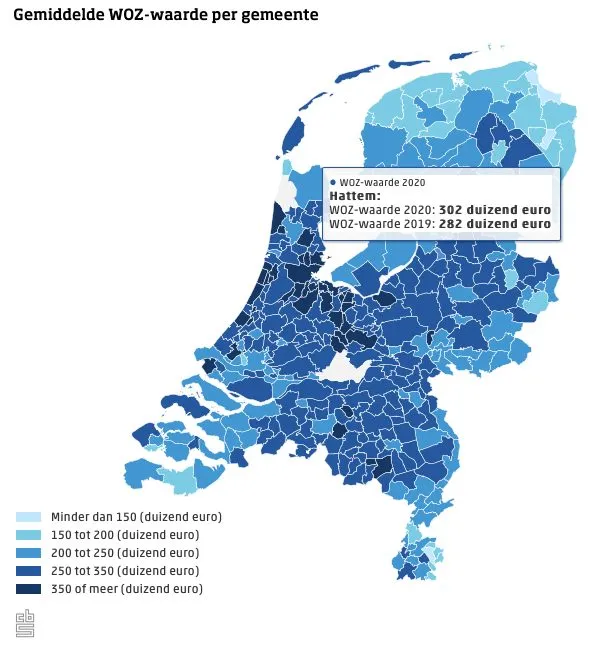 In Hattem is de gemiddelde WOZ-waarde voor woningen dit jaar met 7,1% gestegen ten opzichte van 2019. Daarmee ligt de stijging onder het landelijk gemiddelde.
