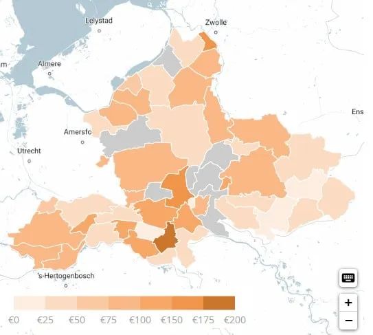 Uit het kaartje, waarin de uitgaven worden getoond die door de gemeente gedaan worden voor mantelzorgers, blijkt dat de gemeente Hattem een royaal gebaar maakt naar haar mantelzorgers.