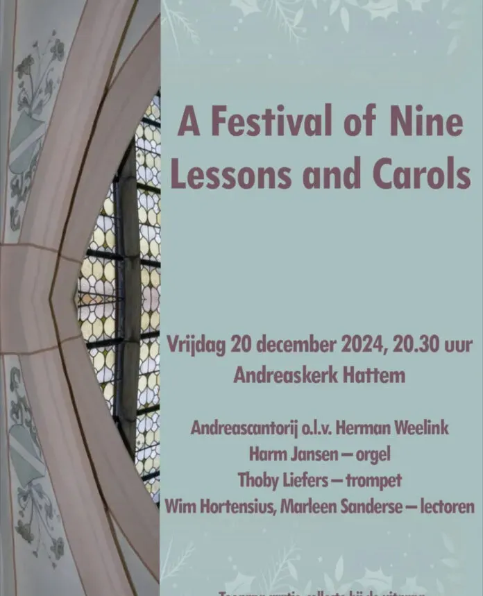 In kerststemming komen met het sfeervolle Festival of Lessons and Carols kan op vrijdag 20 december. Onder leiding van Herman Weelink brengt de Andreascantorij in de Grote of Andreaskerk van Hattem om 20.30 uur ‘een mix van bekende en verrassende carols’. Het wordt afgewisseld met lezingen door burgemeester Marleen Sanderse en ds. Wim Hortensius.