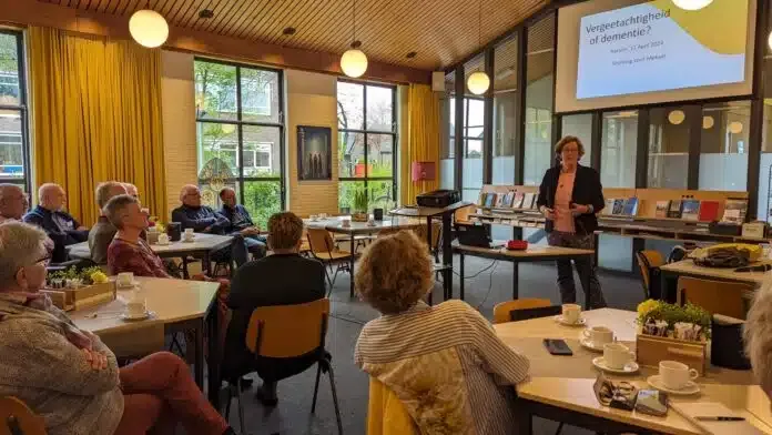 Regterink geeft de aanwezigen ook de nodige tips mee: ’Probeer mee te bewegen met degene die dementie heeft. Probeer niet teveel te corrigeren als iemand fantaseert. In de ogen van de dementerende is wat wij fantasie zouden noemen de werkelijkheid. Geluk is belangrijker dan gelijk’.