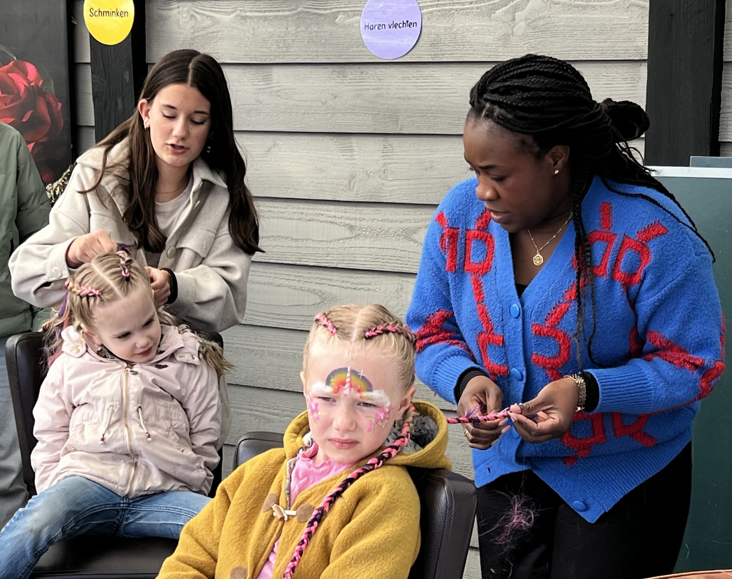 In de tuin zelf deden kleine mensen mee aan activiteiten zoals schminken, goocheltrucs, nagels lakken en vlechten. Vooral de meisjes bleken gek te zijn op de grote versiertrucs van de vrijwilligers die overal meehielpen om er een gezellig dag van te maken. De lekkernijen zoals cupcakes en hamburgers gingen grif van de hand, evenals de oliebollen. Ook al scheen de zon geregeld, oliebollen doen het altijd goed, zo bleek.