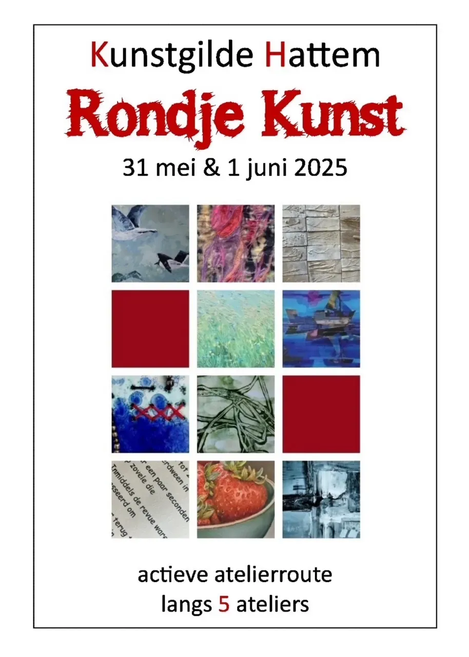 In Hattem wordt zaterdag 31 mei en zondag 1 juni een Rondje Kunst gehouden. Vijf leden van Kunstgilde Hattem openen dan van 13.00 tot 17.00 uur de deuren van hun atelier voor het bezichtigen van kunstwerken en live demonstraties. Ook de meeste andere leden van dit kunstenaarscollectief doen mee aan deze activiteit, door Visit Hanzesteden geselecteerd als één van de negen leukste voorjaarsevenementen in Nederlandse Hanzesteden.