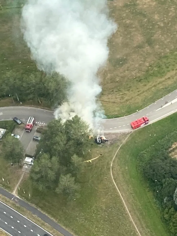 Het verkenningsvliegtuig Ajax Noord, dat momenteel observeert vanwege het verhoogde natuurbrandrisico, was de brandende berg maaiafval opgevallen en kwam polshoogte nemen. De bemanning maakte foto’s van de brand.