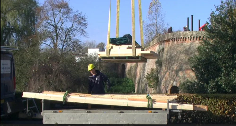 Afgelopen maandag 11 november zijn de eerste materialen voor het verder herstel van de Hattemse Verkentoren gelost. Daarmee start de herbouw op de aangekondigde datum. In de nacht van 9 op 10 juni werd het monument vernield door een waarschijnlijk moedwillig aangestoken brand. De balken en het riet moeten het markante Hattemse uitzichtpunt weer zijn authentieke uitstraling geven. De Verkentoren was verzekerd en de schade wordt door de verzekeraar vergoed, zo liet de gemeente Hattem al eerder weten.