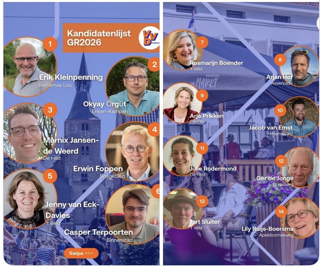 Van Assenrade tot Apeldoornseweg en van Hoenwaard tot de Hilst… met trots presenteerde de VVD haar kandidatenlijst op 9 december. Onder aanvoering van Erik Kleinpenning gaat de VVD met een lijst met bekende en onbekende Hattemers meedoen aan de gemeenteraadsverkiezingen op 18 maart. De kandidaten wonen verspreid door heel Hattem en willen met de Hattemers ‘samen op weg naar een Gezond Hattem’, aldus de partij.