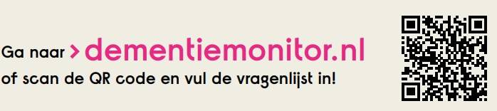De vragenlijst invullen kan via de QR-code bij dit artikel of via: www.alzheimer-nederland.nl/dementiemonitor. Invullen kan anoniem en duurt ongeveer twintig minuten.