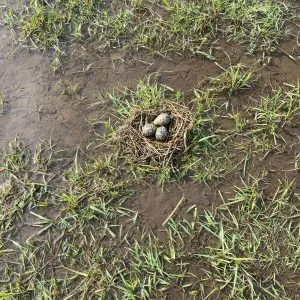 “Het inzetten van alternatieven, zoals ultrasoon geluid, heeft als nadeel van het geluid ver draagt en daardoor ook de weidevogels afschrikt en dat willen we niet. Het gaat namelijk heel goed met de weidevogels in De Hoenwaard. Er broeden vele vogels zoals de grutto, tureluurs, watersnippen en kieviten. Voor deze vogels is een speciaal plasdras-gebied en daar heb ik recent mest uitgereden. De vogels hebben strootjes uit de mest gehaal en daar nestjes van gemaakt.”