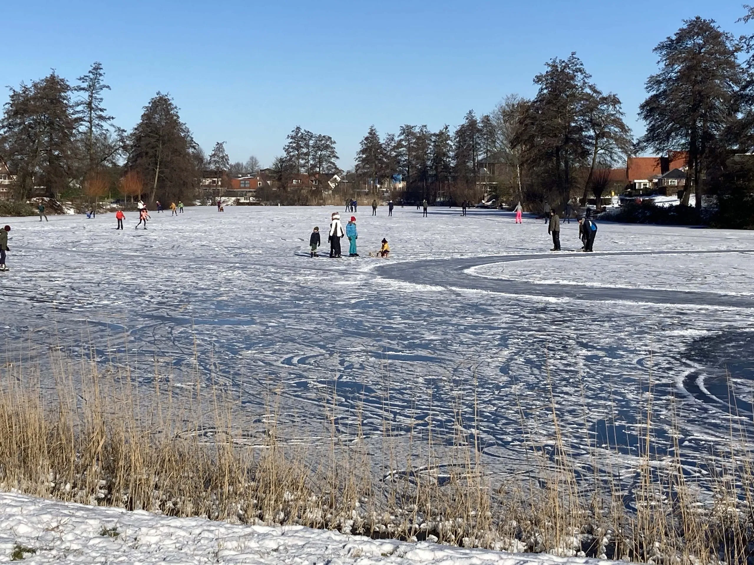 Toch was er vandaag in Hattem nog volop gelegenheid voor schaatspret. Op De Waa waren vanmorgen vroeg al kinderen en volwassen schaatsers te vinden. Vooral voor de kinderen was het een feest, want zij hebben soms nog nooit op natuurijs gestaan, laat staan op schaatsen. De hele dag is het gezellig druk gebleven op De Waa waarbij voldoende afstand gehouden kon worden om coronaproof te genieten van het weer en het schaatsen.