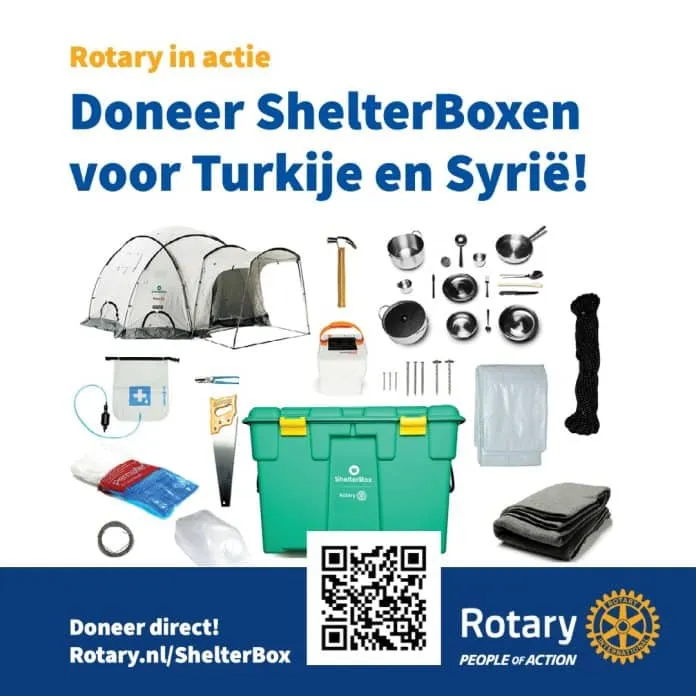 Wilt u zelf ook uw steentje bijdragen aan deze actie? Donaties kunnen overgemaakt worden op rekeningnummer NL 68 ABNA 0557 11 9030 van ShelterBox Nederland onder vermelding van Rotaryclub Hattem Heerde/ ‘noodhulp aardbeving Turkije en Syrië’.