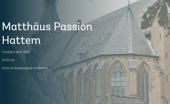 De uitvoering op 8 april begint om 19.00 uur. Kaarten zijn verkrijgbaar via https://matthauspassionhattem.nl of via www.klassiekemuziek.nl .